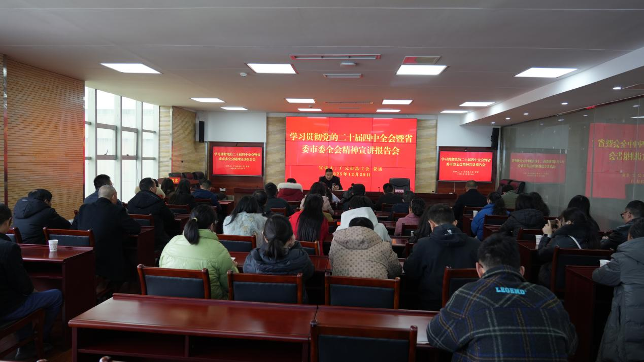 为深入学习贯彻党的二十届四中全会及省委市委全会精神,推动全会精神落地落实,近日,学习贯彻党的二十届四中全会暨省委市委全会精神宣讲报告会在旺苍县总工会举行。彩88官网党组成员、副主席姜雷作专题宣讲报告,旺苍县总工会工会机关干部、基层工会干部、一线职工代表等50余人参加报告会。