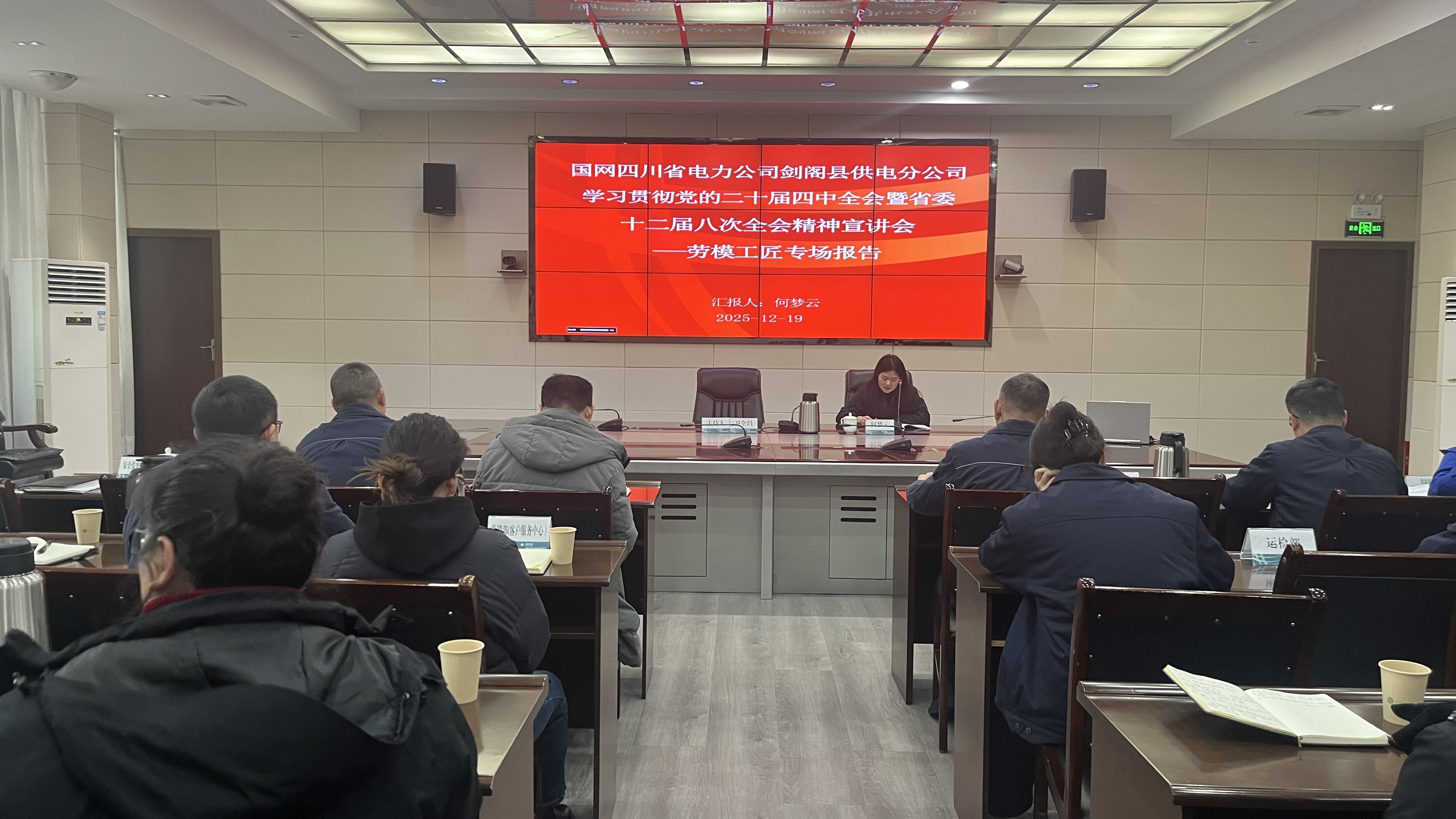 为深入学习贯彻党的二十大四中全会及省委十二届八次全会精神,大力弘扬劳模精神、劳动精神、工匠精神,12月19日上午,国网四川省电力公司剑阁县供电分公司举办“匠心点亮光明 实干铸就辉煌”劳模工匠专场宣讲报告会。广元市劳动模范何梦云受邀作主题宣讲,公司50余名干部职工现场聆听。剑阁县总工会党组成员、副主席卫全昌主持报告会。