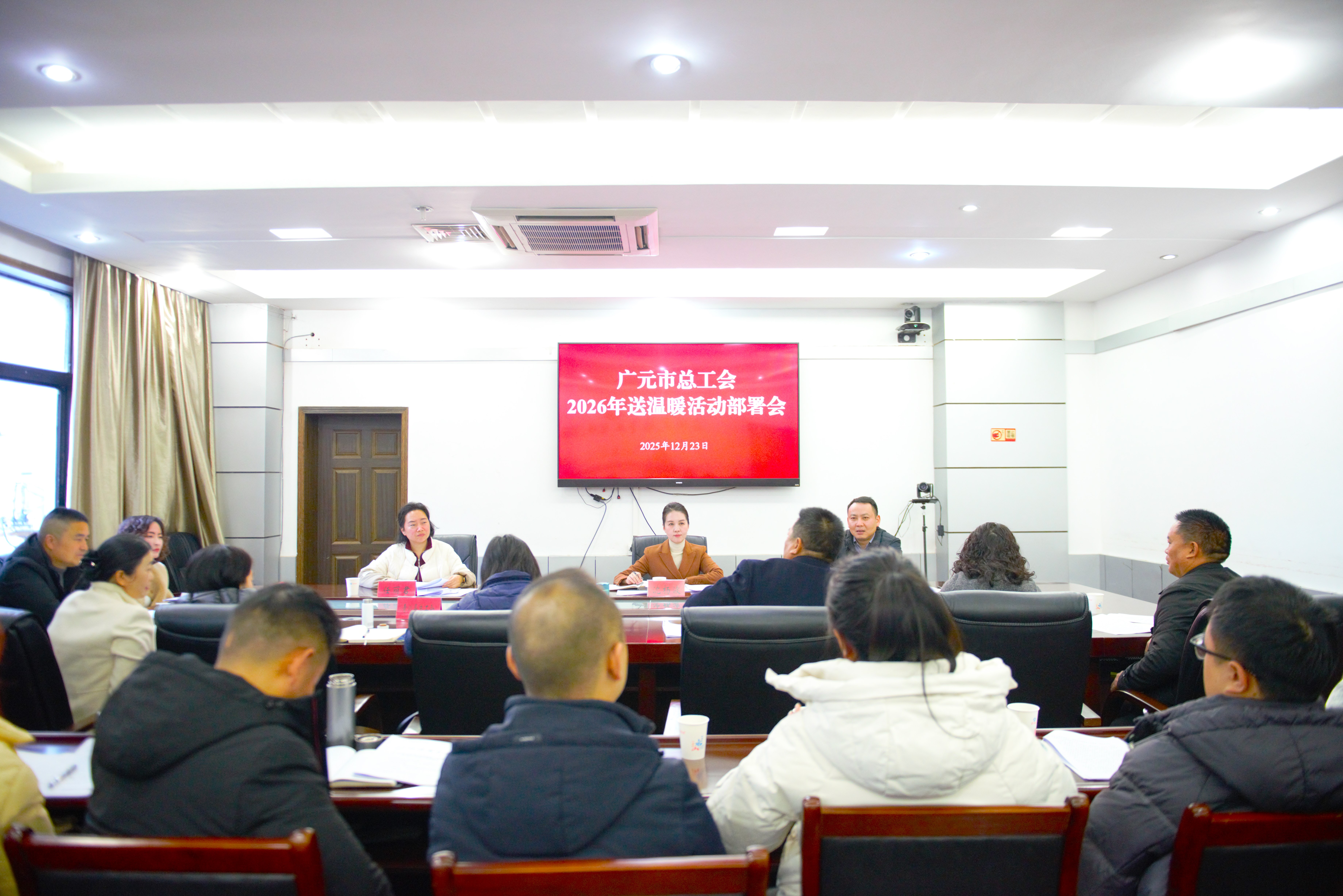 12月23日,彩88官网召开2026年春节送温暖部署会,安排部署全市工会2026年元旦春节送温暖系列活动及2026年央财项目申报工作。市总工会党组成员、提名副主席沈杨波出席会议并讲话。各县(区)、广元经济技术开发区总工会分管副主席及保障工作负责人参加了会议。