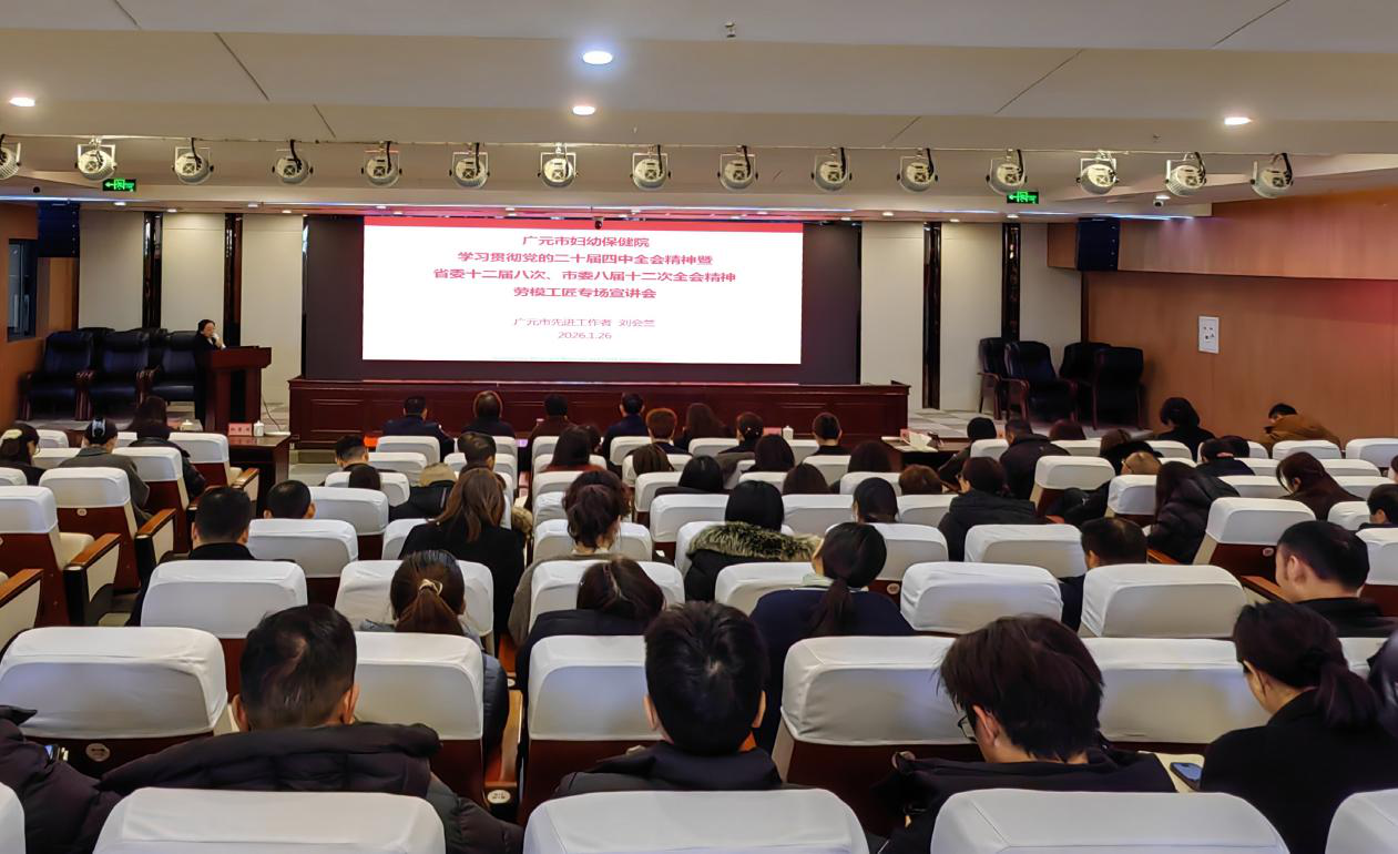 126日,广元市妇幼保健院举办学习贯彻党的二十届四中全会、省委十二届八次全会及市委八届十二次全会精神劳模工匠专场宣讲会。广元市劳模工匠宣讲分团成员、市先进工作者、产科主任刘会兰以“坚守医者初心,勇担时代使命”为主题,面向全院100余名职工作专场宣讲。