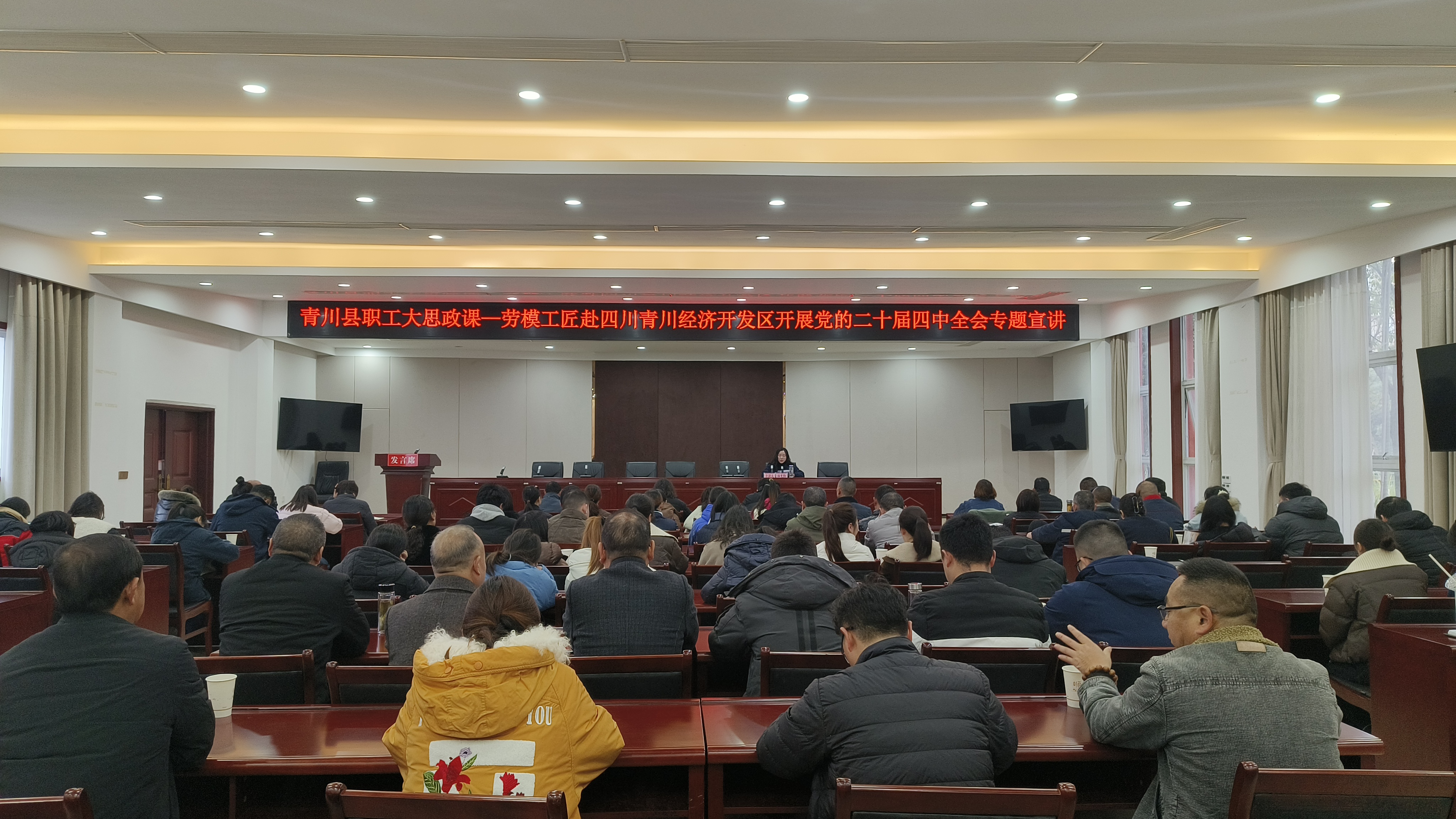 为深入学习宣传贯彻党的二十届四中全会精神,推动全会精神在基层一线落地生根、开花结果,12月16日上午,青川县总工会在四川青川经济开发区举办了一场别开生面的劳模工匠专题宣讲会。园区企业管理人员、技术骨干及一线职工代表共计100余人齐聚一堂,共同聆听劳模故事,感悟精神力量,在互动交流中汲取奋进动力。