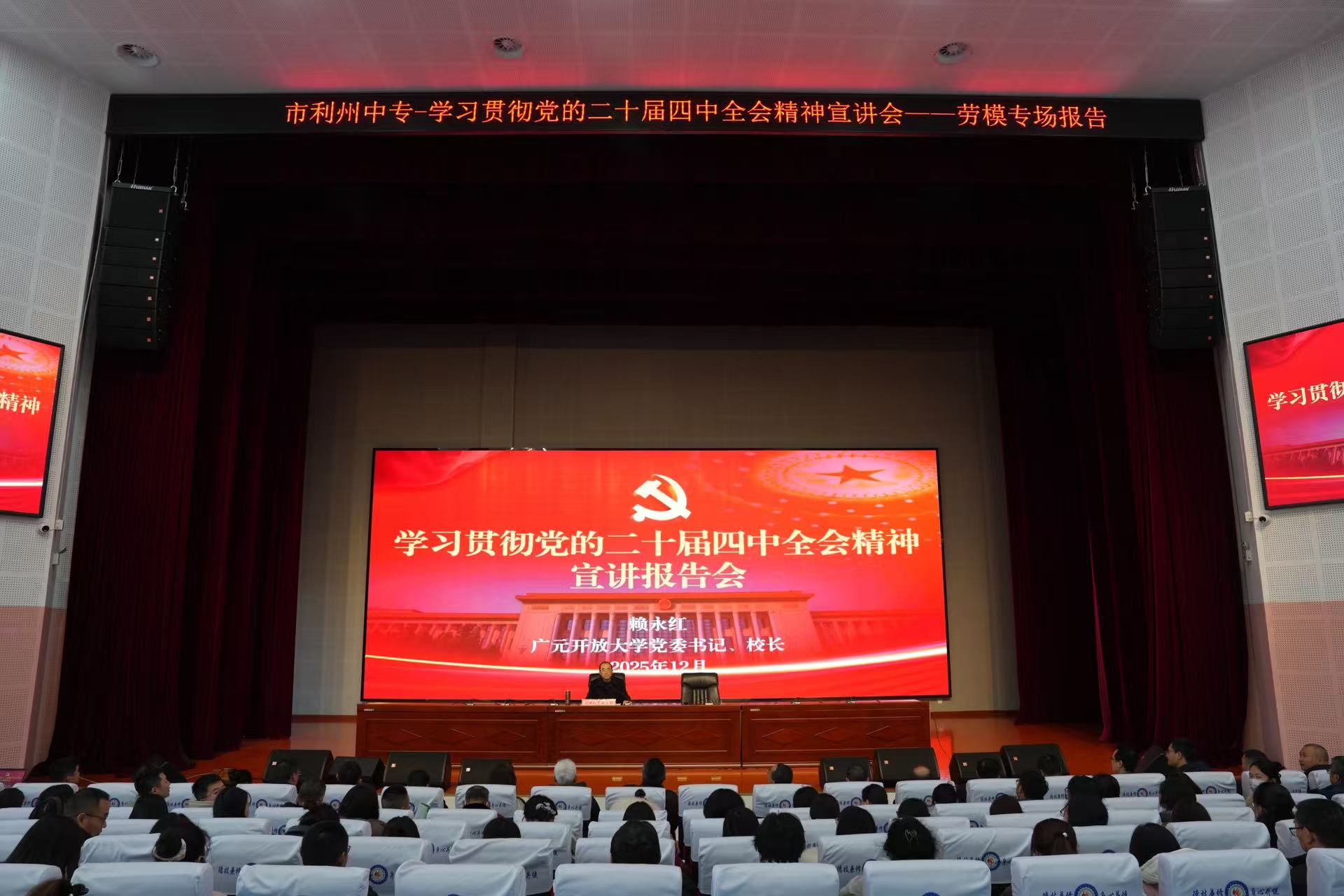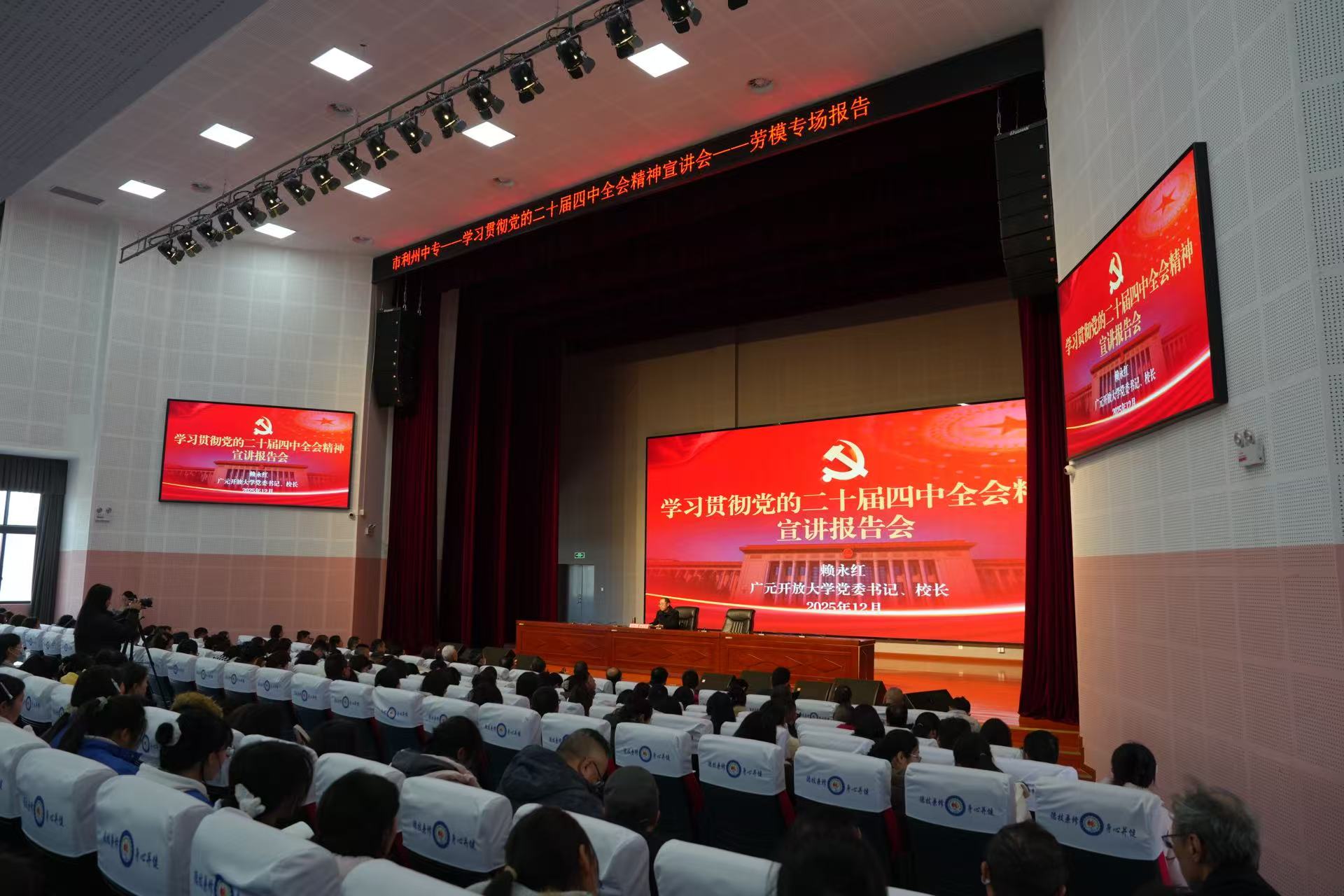 为深入学习贯彻党的二十届四中全会精神,聚焦“一体推进教育科技人才发展”部署,筑牢师生职教报国信念,按市总工会统一安排,12月24日,市委第十五分团(劳模工匠宣讲分团)宣讲成员、四川省劳动模范、广元开放大学党委书记校长赖永红教授,受邀赴利州中专开展专题宣讲,全校教职工及学生代表500余人现场聆听。
